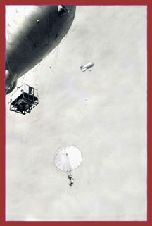 to rise to 800 feet. An RAF instructor would accompany four or five trainees in the cage and one balloon could drop