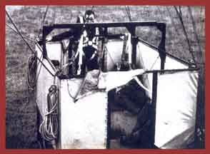 in strong winds once reaching Coventry before recapture. A cage was slung beneath the balloon, with a `Whitley hole'